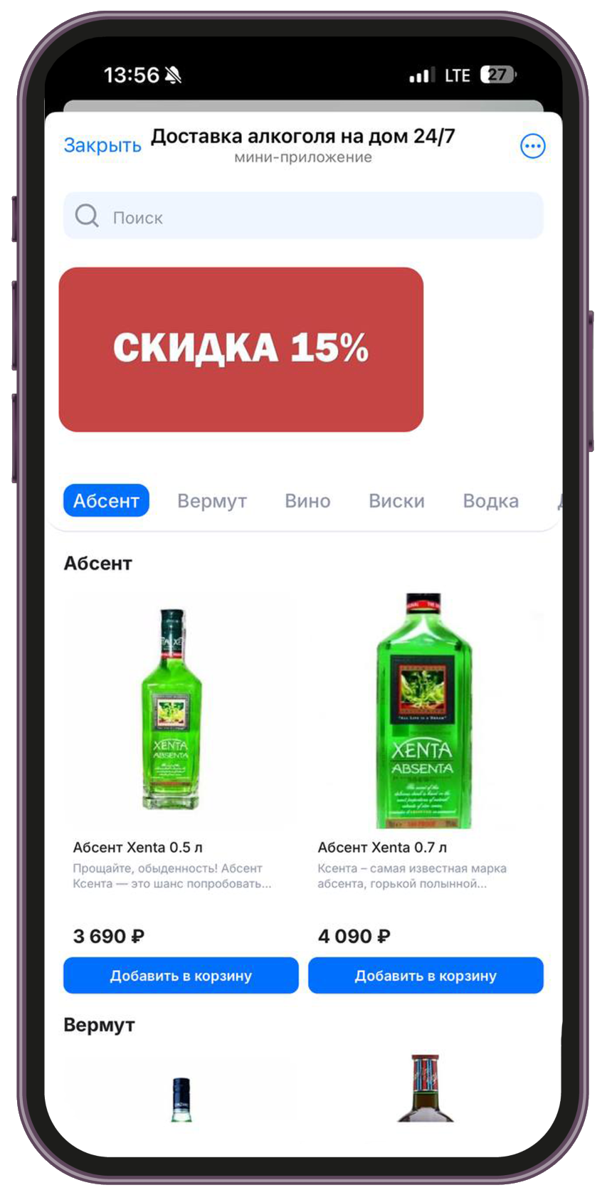 Минимальная сумма заказа алкоголя — от 1000 рублей.